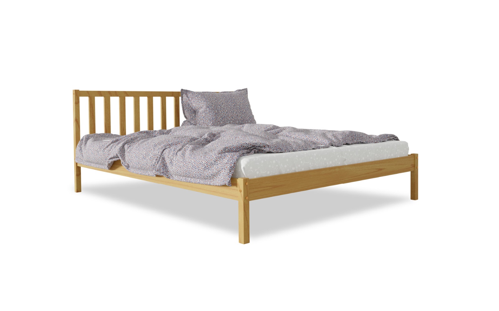 - Koka gulta piemērota dažādiem interjera stiliem.